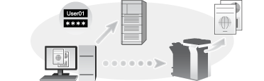 When printing a document in an environment where user authentication or account track is employed, you need to send the authentication information (user name and password) to this machine to execute printing. This requirement limits the users who can use this machine, preventing unauthorized use by a third party.
