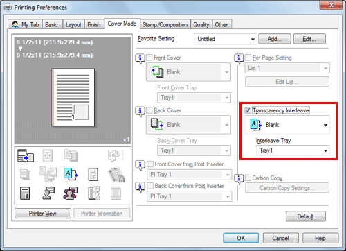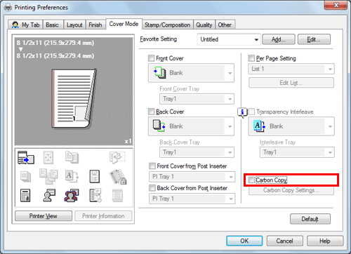 In the [Cover Mode] tab, select the [Carbon Copy] check box.