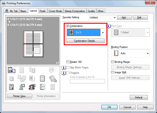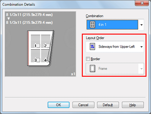 If necessary, click [Combination Details...] to set the page layout order and whether to input border lines between pages.