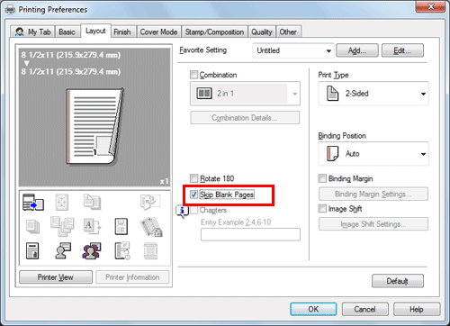 [Skip Blank Pages] is available only when the printer driver for Windows is used.
