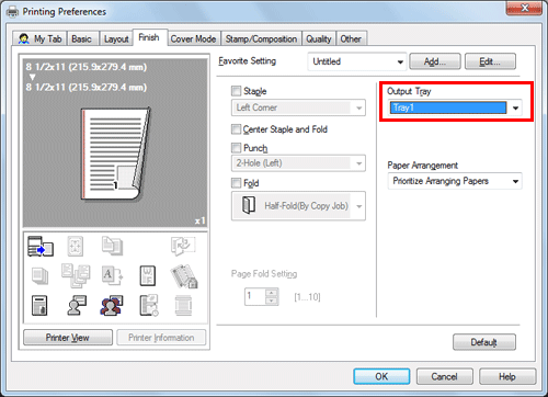 For example, by using the print command once, you can print a submission document on high-quality paper loaded in Tray 1 and print your copy on recycled paper loaded in Tray 2.