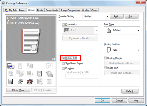 In [Print Type] in the [Layout] tab, select [2-Sided]. [2-Sided] is specified by default.