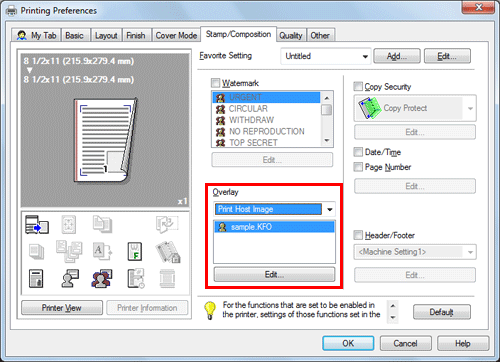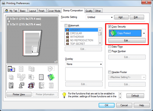 On the [Stamp/Composition] tab, select the [Copy Security] check box, and then select [Copy Protect].