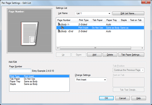 [Tab Paper Settings] | When using index paper, set the number and positions of index tabs. | |