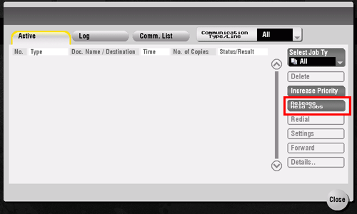 A print job without authentication information is a print job that is sent without correctly configuring the User Authentication/Account Track setting using the printer driver even though the User Authentication/Account Track setting is configured on this machine.
