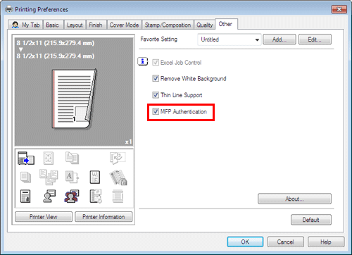 To perform MFP authentication when external server authentication is used together, select the [MFP Authentication] check box in the [Other] tab.