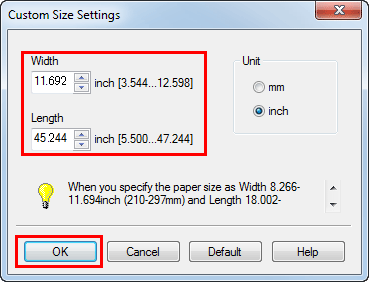 In [Original Size] in the [Basic] tab, select [Custom Size].
