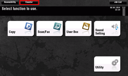 The counter indicates the total number of pages printed on this machine on a function basis. Check counter information on the Control Panel of this machine. When necessary, counter information can be printed in list form.