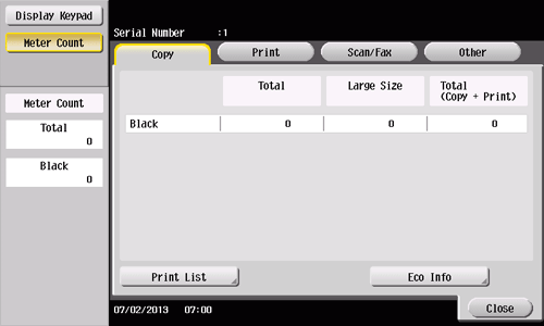 The counter also allows you to check the ratio of paper saving as a result of two-sided printing or the page combine function, a transition of power consumption (Eco Info), and other values, depending on user's operation conditions. This information will help you gain an understanding of the usage status of this machine.