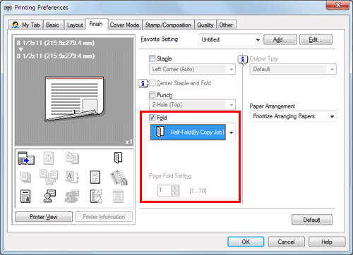 In the [Finish] tab, select the [Fold] check box, and select the folding mode.