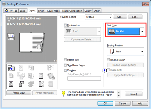 In [Print Type] in the [Layout] tab, select [Booklet].