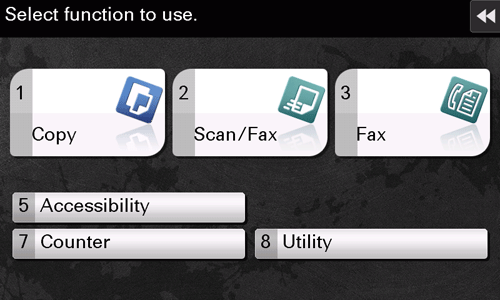 [Utility] | Tap this button to configure settings of this machine or check the use status of this machine. For details, refer to Here. |