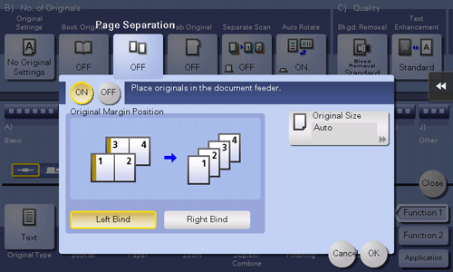 [ON]/[OFF] | Select [ON] to specify Book Separation. |
