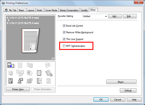 To perform MFP authentication when external server authentication is used together, select the [MFP Authentication] check box in the [Other] tab.