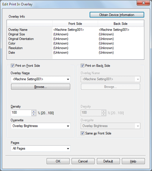 When printing images on both sides, selecting the [Same value for Front and Back sides] check box applies the same settings to both sides.
