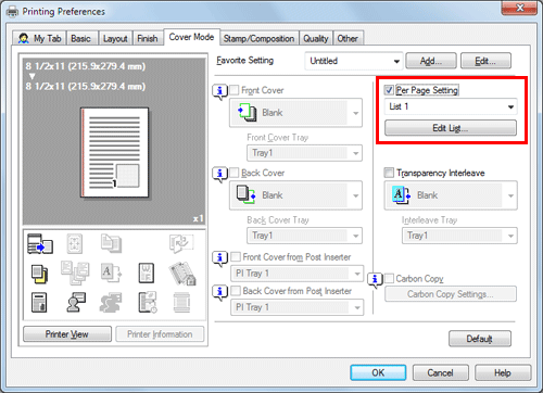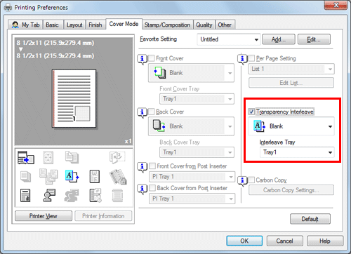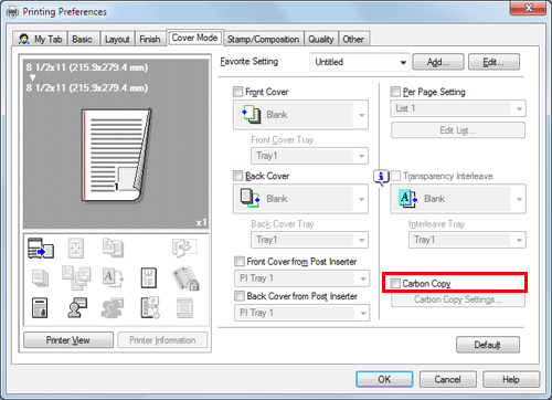 In the [Cover Mode] tab, select the [Carbon Copy] check box.