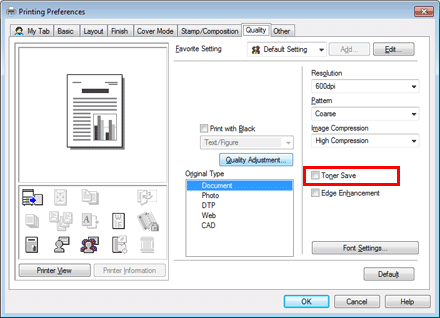 When you print a large number of copies, use of the Proof Print function will prevent a large number of misprints being created, thereby reducing the amount of waste paper generated. For details, refer to Here.