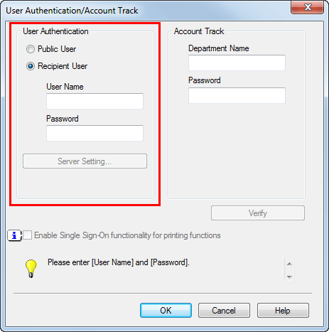 If your computer can communicate with this machine, clicking [Verify] executes authentication based on the authentication information that has been input. You can check the authentication information for errors before starting printing.