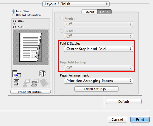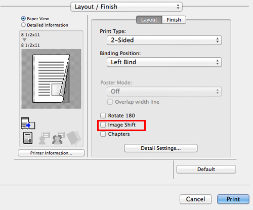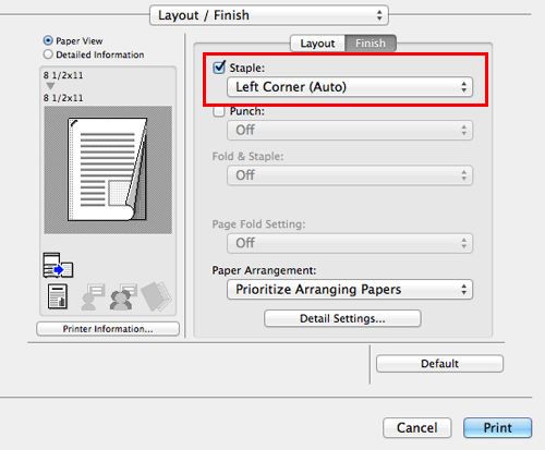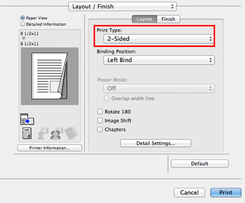 In [Print Type:] in [Layout / Finish], select [2-Sided]. [2-Sided] is specified by default.