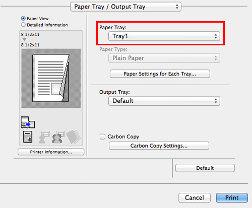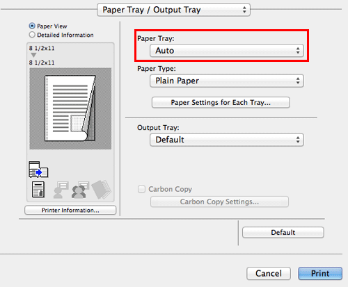 In [Paper Tray:] in [Paper Tray / Output Tray], select the paper tray for printing.