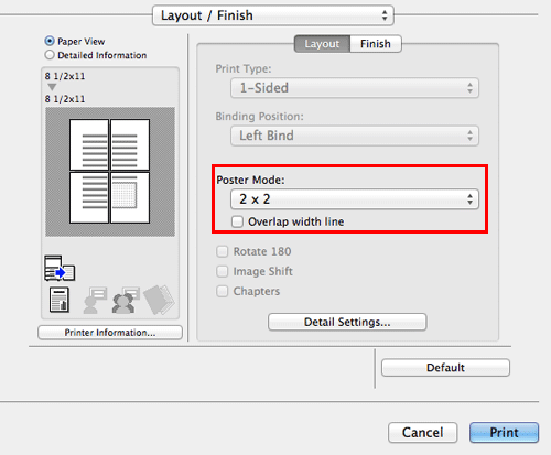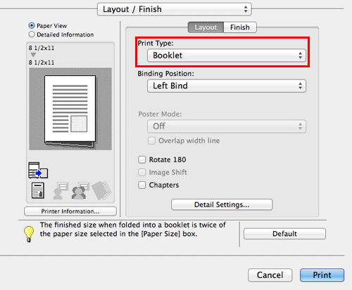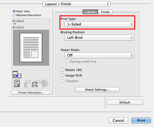 In [Print Type:] in [Layout / Finish], select [1-Sided].
