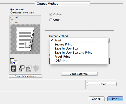 When printing a highly confidential document in an environment where user authentication or account track is employed, using the ID & Print function enables high security printing. For details, refer to Here.