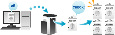 When you print a large number of copies, use of the Proof Print function will prevent a large number of misprints being created, thereby reducing the amount of waste paper generated. For details, refer to Here.
