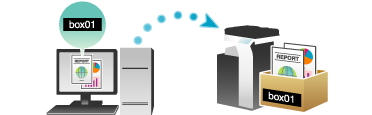 Since you need to be authenticated in this machine to print the data saved in the box, this function is suitable for safely printing highly confidential documents. When you are successfully authenticated, the print data of the login user is automatically printed. This enhances security as well as ensures smooth operation.