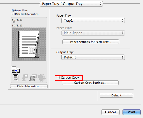 [Carbon Copy Tray] | Select the paper tray for carbon copies. Select the check boxes for all paper trays to be used. |
