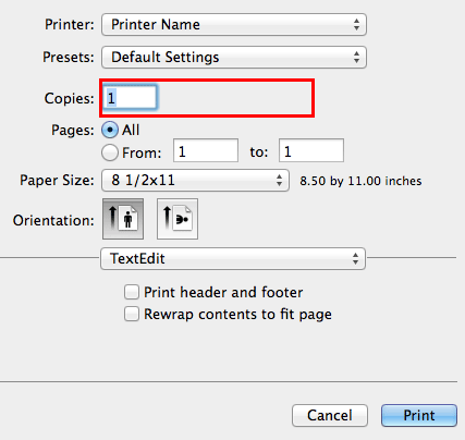 In [Copies:] in [Copies & Pages], specify the number of copies you want to print.
