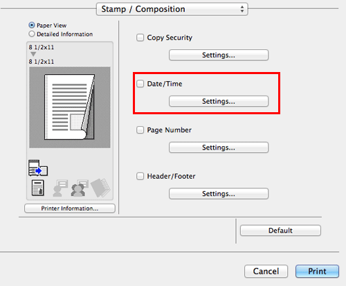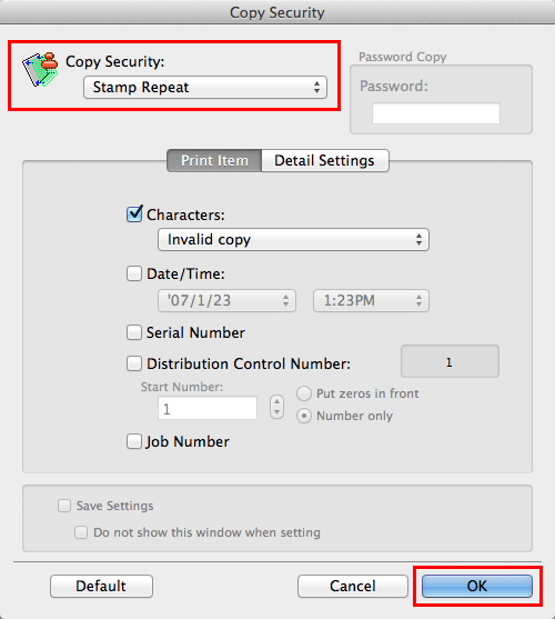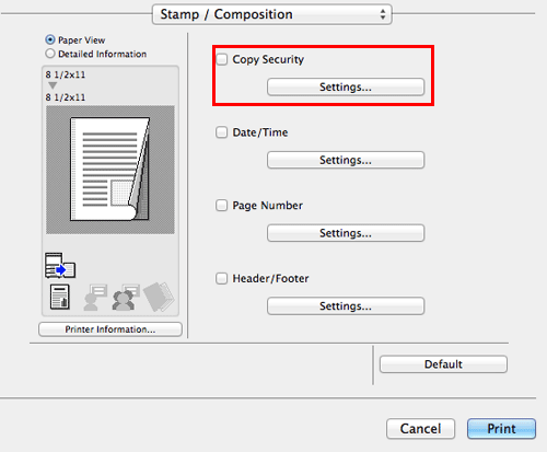 In [Stamp / Composition], select the [Copy Security] check box, then click [Settings...].
