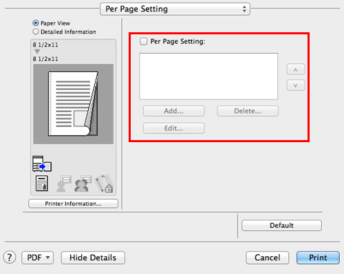 In [Per Page Setting], select the [Per Page Setting:] check box, and the click [Add...].