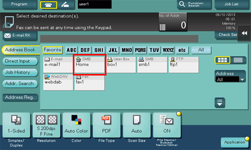 To send scanned original data to a shared folder on the server or your computer, select the [Home] key.