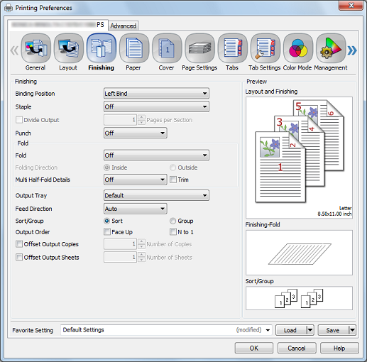 [Output Tray] | [Default], [Multi Folder Sub Tray], [Saddle-Stitcher Sub tray], [Stapler Main Tray], [Stapler Sub tray], [Perfect Binder Sub Tray] , [Large Capacity Stacker Main tray/Sub tray], [Multi Folder Main tray] | Select the tray to output the printed pages. Selectable items vary depending on the mounted optional device. |