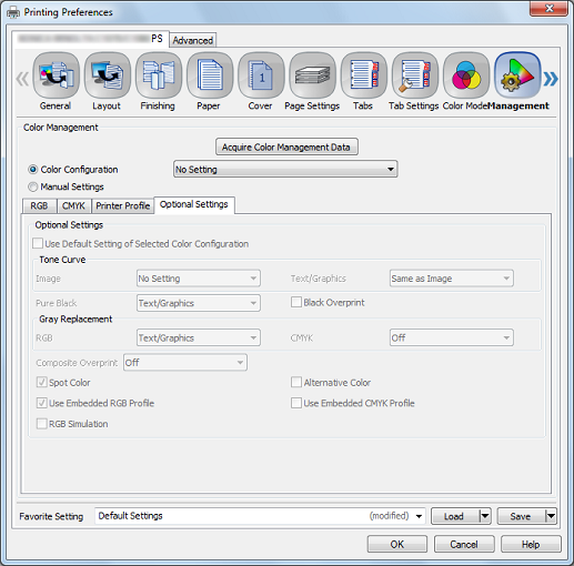 [Optional Settings] | [Use Default Setting of Selected Color Configuration] | Set this to use color configuration. For details about the color configuration, refer to Color Configuration. |