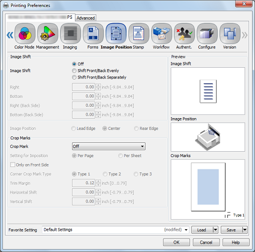 [Only on Front Side] | Off, On | The crop mark is printed only on the front surface if [2-Sided] is selected. |