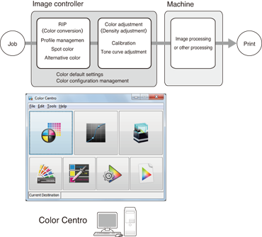 Color Centro ensures appropriate color printing on the machine by managing colors with Image Controller IC-602.