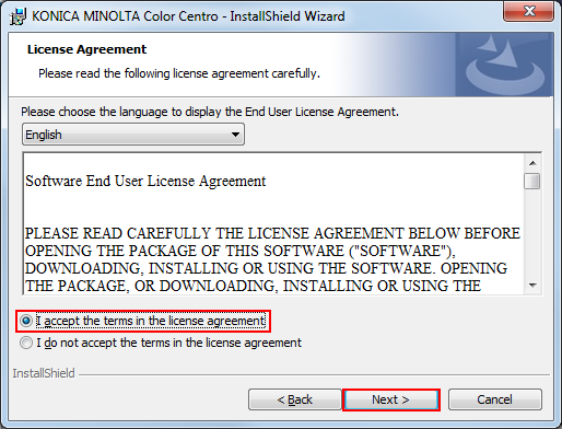 By selecting from the drop-down list, you can change the language of the license agreement.
