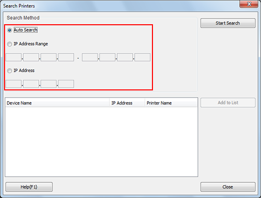 Select [Auto Search], [IP Address Range], or [IP Address].