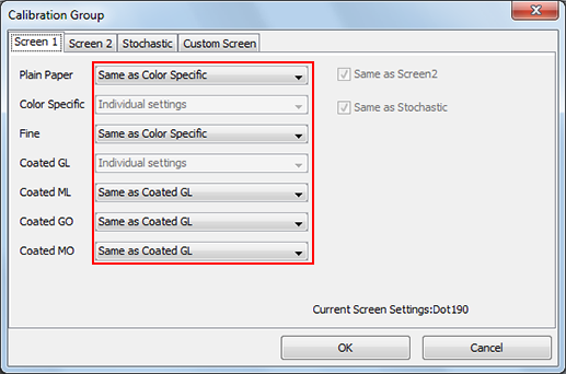 To perform grouping, select [Individual settings] for one of the paper types of that group.3