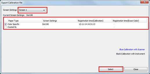 From the [File] menu on the [Calibration Manager] screen, select [Export Calibration file].