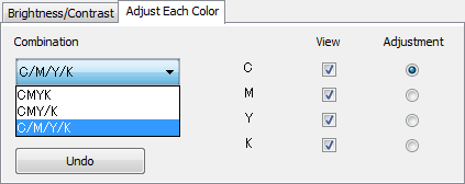 Lets you select [CMYK], [CMY/K], or [C/M/Y/K]. When you select [CMYK], you can adjust the consolidated tone curve of CMYK.