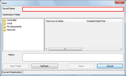 When you select [Controller] as the destination folder, the tone curve is saved in the image controller.