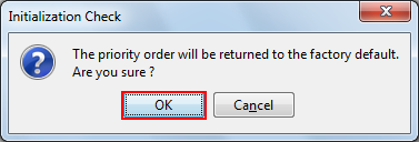 You can reset the priority settings of the spot color table which was registered at factory shipping.