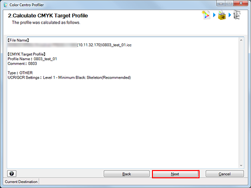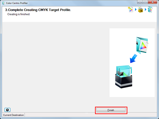 • If you launched Color Centro Profiler by clicking [CMYK Target Profile] on the [Profile Management] screen, Color Centro Profiler is closed to return to [Profile Management] screen.