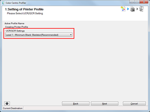 Select the UCR/GCR level from [UCR/GCR Setting] of the UCR/GCR Setting screen.