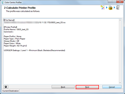 • If you launched Color Centro Profiler by clicking [Printer Profile] on the [Profile Management] screen, Color Centro Profiler is closed to return to [Profile Management] screen.