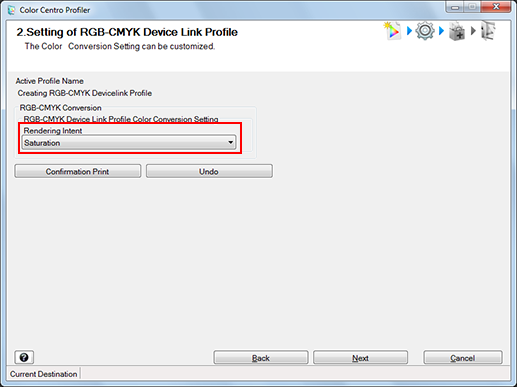In the Color Conversion Setting screen, you specify a rendering intent.
