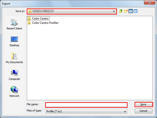 You can export a CMYK-CMYK device link profile of the image controller to [Local], [My Documents], or [Network].
