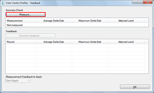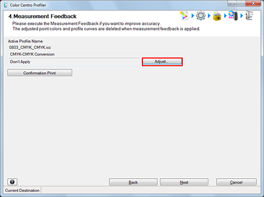On the [Measurement Feedback] screen, you can execute the operation to improve the accuracy of the CMYK-CMYK conversion.